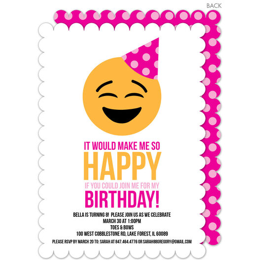 Pink So Happy Emoji Birthday Invitations