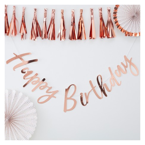 Happy Birthday Bunting Tag Rose Gold Target